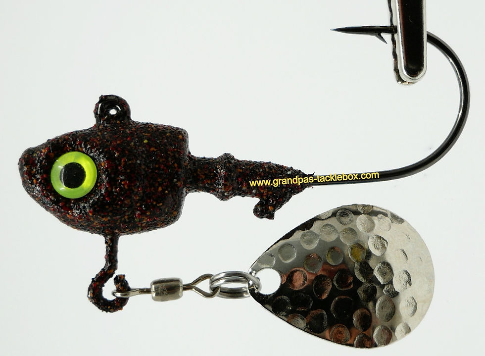 Herring Head Underspin Jigs are made with quality Eagle Claw Hooks (either Regular or Sickle), swivels, willow leaf blades, split-rings and 3D eyes (Only on Painted Version). Herring Head Underspin Jigs are available in all of our colors and glitter coats. This jig can be purchased without the underspin part at our Herring Head Jigs page. Looking for something different? Check out our Herring Head Underspin Synthetic Bucktail Jigs page.