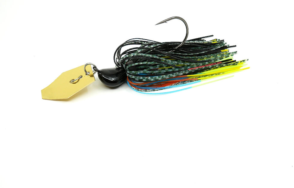 Grandpa’s Tackle Box Skirted Bladed jigs are a must have for your tackle box. They start shaking like a crank bait as soon as they hit the water and sparkle like a shiny spinner bait with fluttering skirting when reeled in. The design of this Skirted Arky Jig allows the shaker blade to sit low enough to hit the jig head. This tapping sound, combined with the jigs shaking, sparkle and waving skirt will no doubt get a big bass’s attention and entice it to take the bait. Our Skirted Bladed Jigs feature shaker style blades, quality flat eye hooks, split rings, duo lock snaps and thick skirting. You can design your own with either silicon or rubber skirting in a pattern of your choice at our Custom Ordered Jigs page. If you were looking for an Arky Jig without skirting, have a look at our Arky Jigs page. Need a skirted weedless version of the Arky Jig, come check out or Skirted Weedless Arky Jig page. Our Bladed Jigs can be purchased without the shaker blade at our Arky Jigs page. Looking for a trailer for your bladed jigs or a bladed jig with a trailer already attached? Check out our X Zone Lures Soft Plastics and Bladed Arky Jigs with Trailers pages.