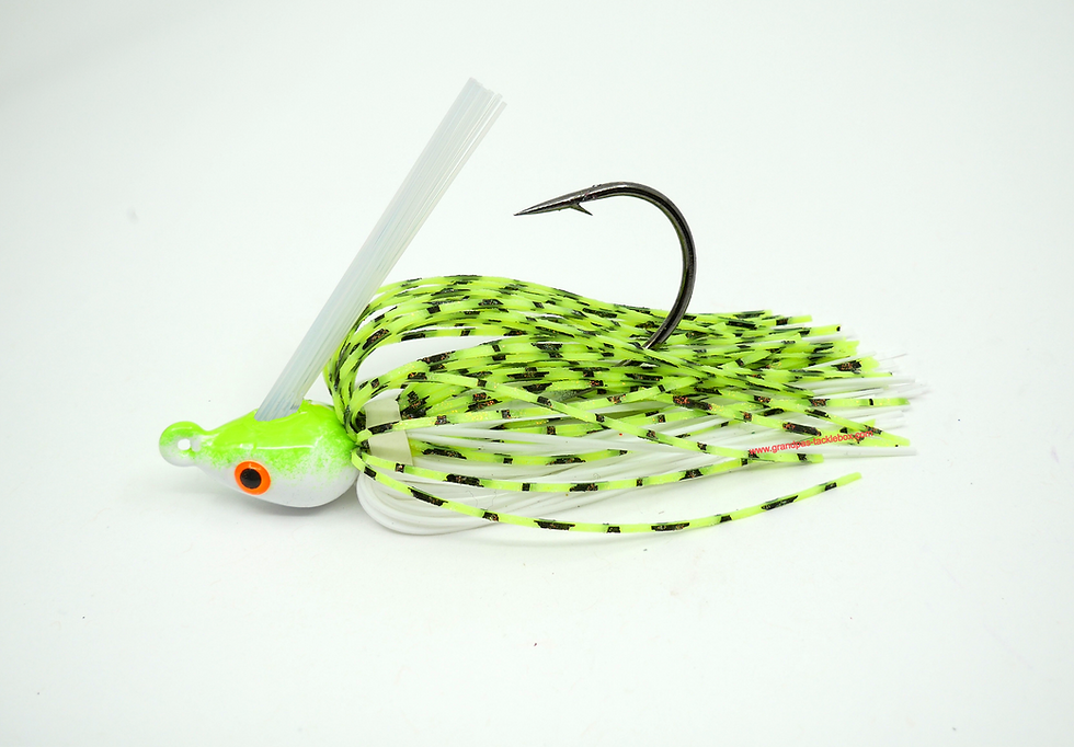 The Skirted Weedless Casting Jig, which is also known as a Skirted Weedless Swim Jig, runs straight and even when retrieved. It is made with a forward 30 degree hook, a sleek bullet style head with accompanying weed guard and a full complement of skirting. We use quality hooks, paint, weed guards, 3D eyes and skirting. Looking for something different? Check out our Weedless Bucktail Casting Jigs page. Looking for a trailer for your jigs or a Skirted Weedless Casting jig with a trailer already attached? Check out our X Zone Lures Soft Plastics and Weedless Casting Jigs with Trailers pages.